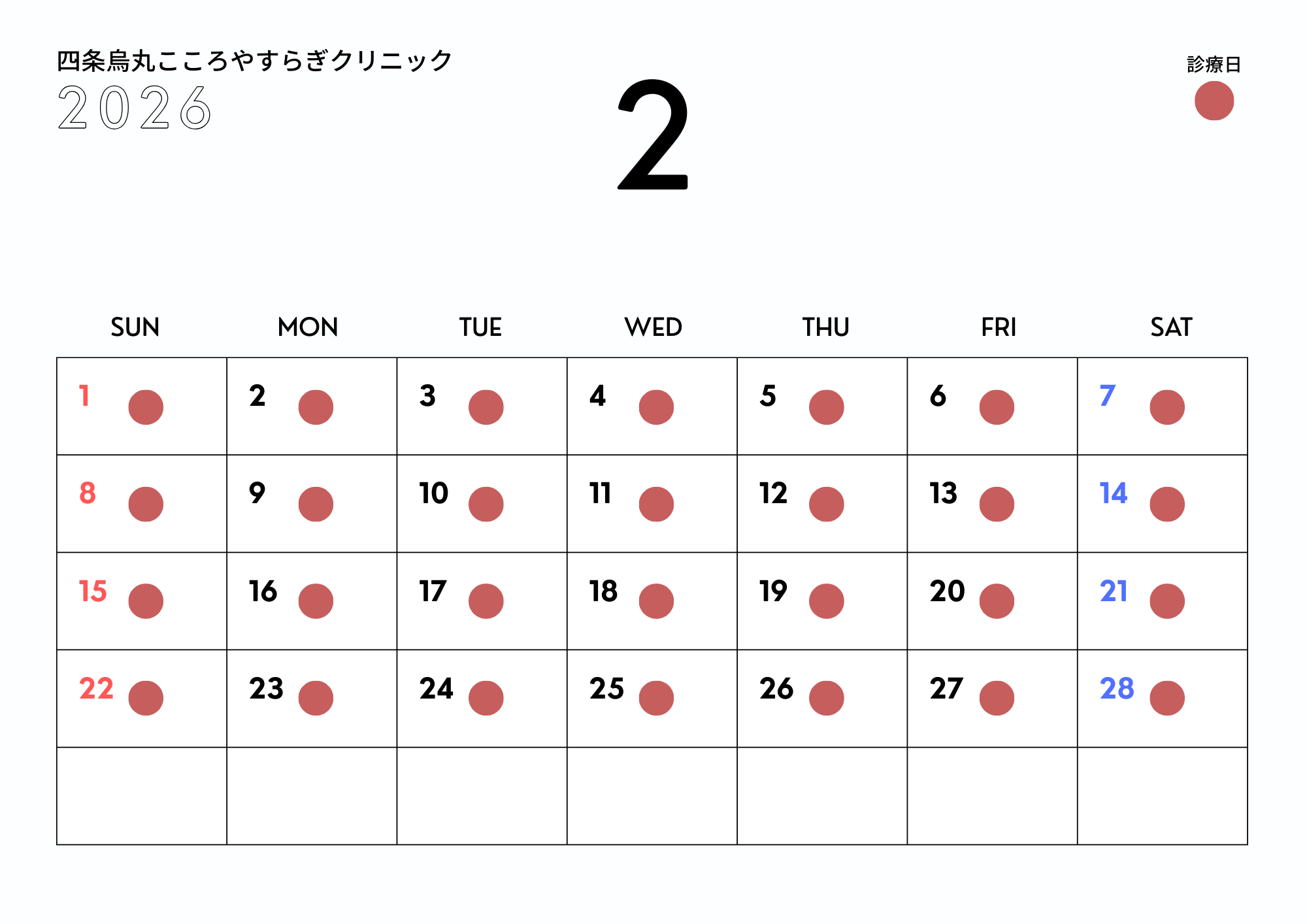 ←2026年1月の診療日はこちら 四条烏丸こころやすらぎクリニック2026年2月診療日のお知らせ